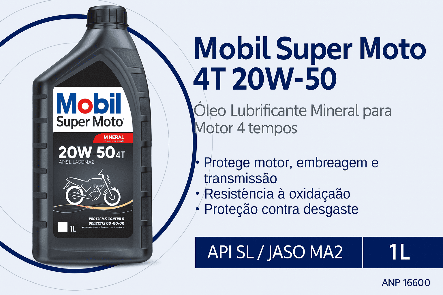 Você receberá 1 litro de óleo lubrificante Mobil Super Moto 20W-50 em embalagem prática e segura.